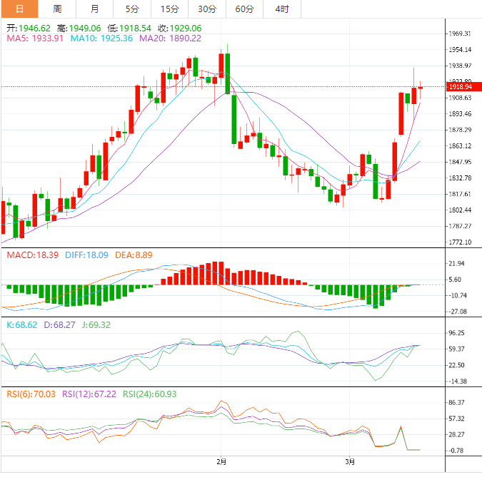 黄金已经在61.8%的斐波那契回撤位(从2月02日的高点1,959.80美元到2月28日的低点1,804.76美元)上方舒适地建立了1,900.00美元。