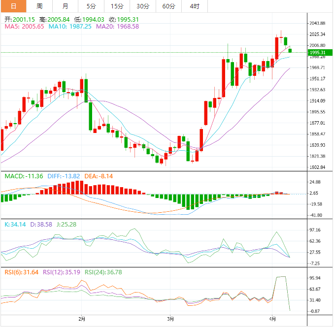 周一亚洲时段,黄金交投于2003.32附近。金价开盘後出现强烈的抛售情绪,但跌至较低水平后上出现反应迅速的多头,出现大幅反弹。由于美联储再加息25个基点的机率大幅上升,金价明确跌破2000美元的心理支撑,但已最终收回跌幅,并重新回到2000美元的阻力位之上。芝加哥商品交易所美联储观察工具工具显示,美联储加息25个基点的机会突然增加了65%以上。