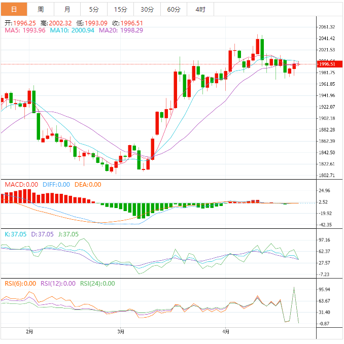黄金价格呈对称三角形图模式拍卖,这表明波动性明显收缩。向上倾斜的趋势线位于4月21日的低点1,971.62美元,向下倾斜的趋势线位于4月20日的高点2,012.44美元。黄金价格仍高于50期指数移动平均线(EMA) 1,992.32美元,这表明上行偏见仍然稳固。
