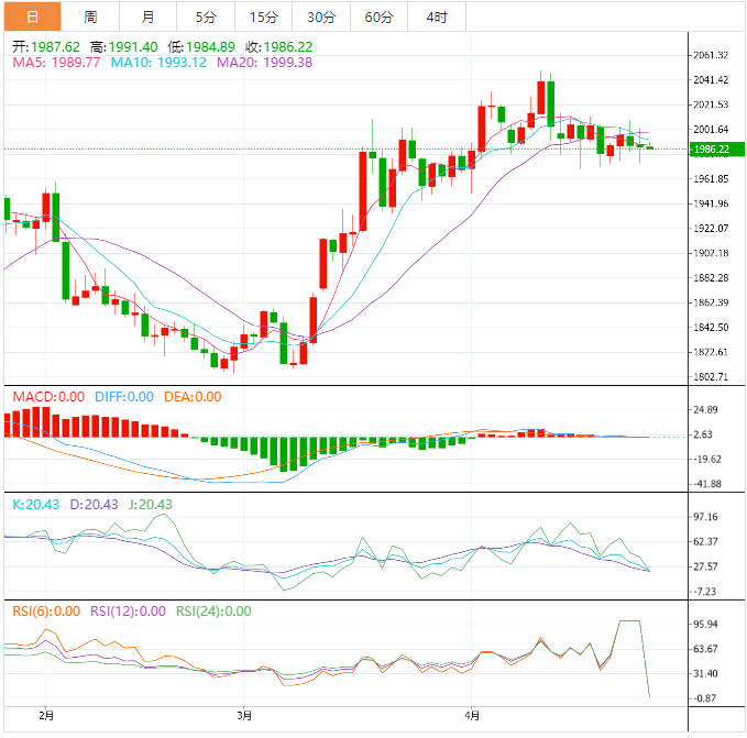 从3月22日的低点1,934.34美元上涨的趋势线对黄金多头起到了缓冲作用。