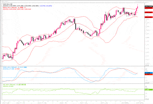 周三(5月3日),美联储主席鲍威尔在再次加息25个基点后暗示可能暂停紧缩政策,黄金市场维持升势。美市尾盘,现货黄金收报2038.60美元/盎司,大幅上升22.10美元或1.10%,而周四亚盘早段,现货黄金更是一度急剧飙升到历史高位2081美元/盎司水平。