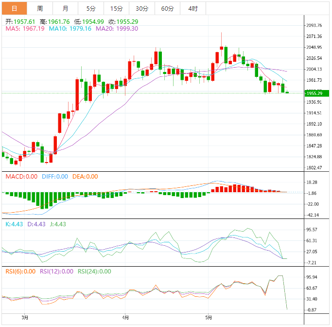 金价触及围绕1,955美元的一周上行支撑线,同时保持在5月16日以来建立的短期交易区间内,目前在1,985-1,951美元之间。