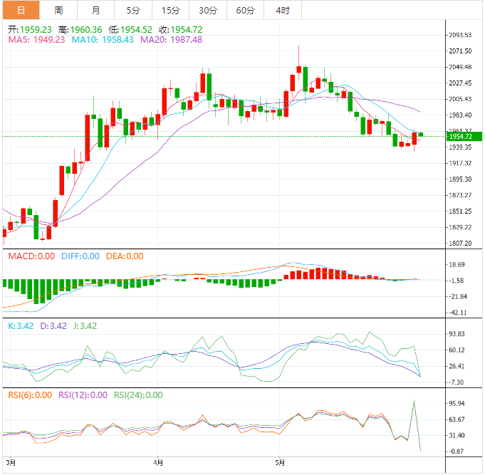 周三亚洲时段,黄金交投于1954.69附近。金价周二从稍早的跌势中反弹,美元回落,且美债收益率下跌,市场对美国债务上限协议广泛乐观。美元从10周高位回落,指标10年期美债收益率触及一周最低。美国长周末假期后,交易员们也在评估周五意外强劲的美国经济数据,这些数据支持了进一步收紧货币政策以抑制通胀的理由。