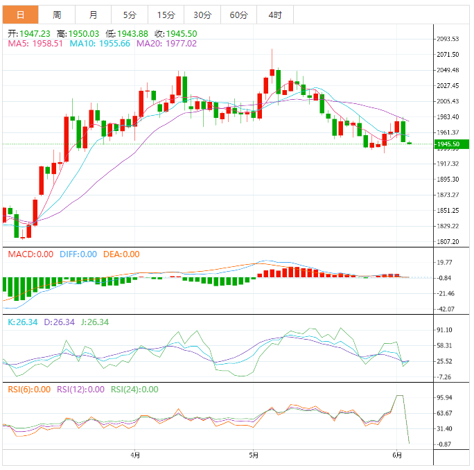 原因可能与相对强弱指数(RSI)线的50.0下方(位于14)以及靠近1937 -32美元的11周水平支撑区域有关,该区域也包括5月初延伸的阻力线。