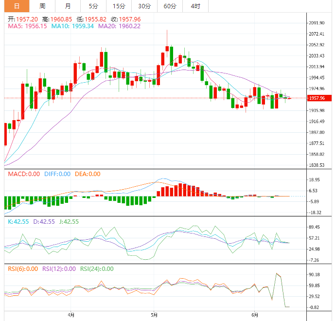 周二亚洲时段,黄金交投于1960.21附近。金价周一下跌,因为美元和美债收益率上涨,同时交易商为繁忙的一周做好准备,本周美国将公布关键通胀数据,且市场将聚焦美联储等多家主要央行政策会议。美国5月消费者物价指数(CPI)将于美国东部时间周二上午8:30公布,生产者物价指数(PPI)读数将于周三上午出炉,当天晚些时候美联储还将宣布利率决定。RJO Futures高级市场策略师Bob Haberkorn表示,“即便(美联储)声明偏向鹰派,但如果停止加息,将推动黄金大幅上涨。”