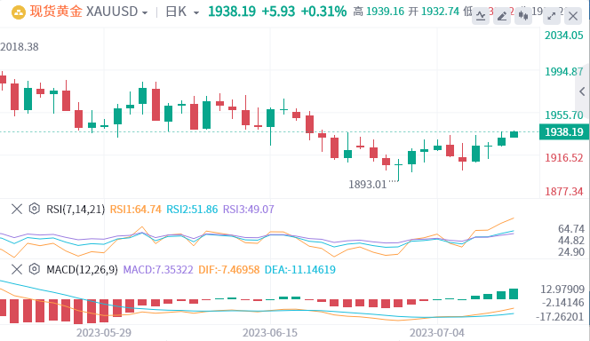 周二(7月11日)亚洲时段,现货黄金震荡微涨,目前交投于1930美元/盎司附近。周一美联储官员讲话偏向鸽派,美元指数持续走弱,创近两个月新低,10年期美债收益率也远离近八个月高点,给到金价支撑继续谨慎上行。