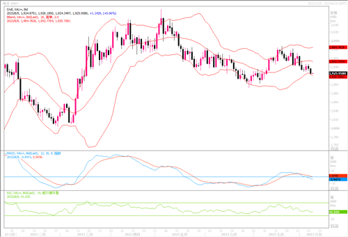 周二(8月8日)现货黄金连续第二个交易日收低,因中国公布的贸易数据令人失望,美国银行业的信用评级警告,以及一些疲弱的企业财报导致部分资金为避险涌向美元和美国国债。当日美市尾盘,现货黄金收报1925.04美元/盎司,下跌11.50美元或0.59%,日内最高触及1938.08美元/盎司,最低触及1922.57美元/盎司。