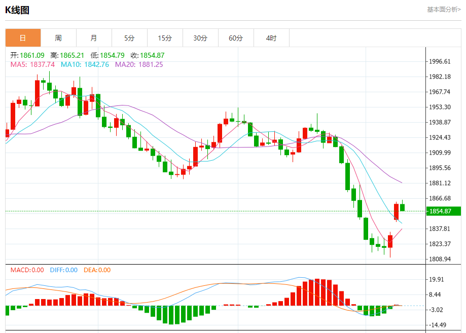 截止发稿,黄金价格现报于1855.03,跌幅0.33%。(亚汇网编辑:冰凡)