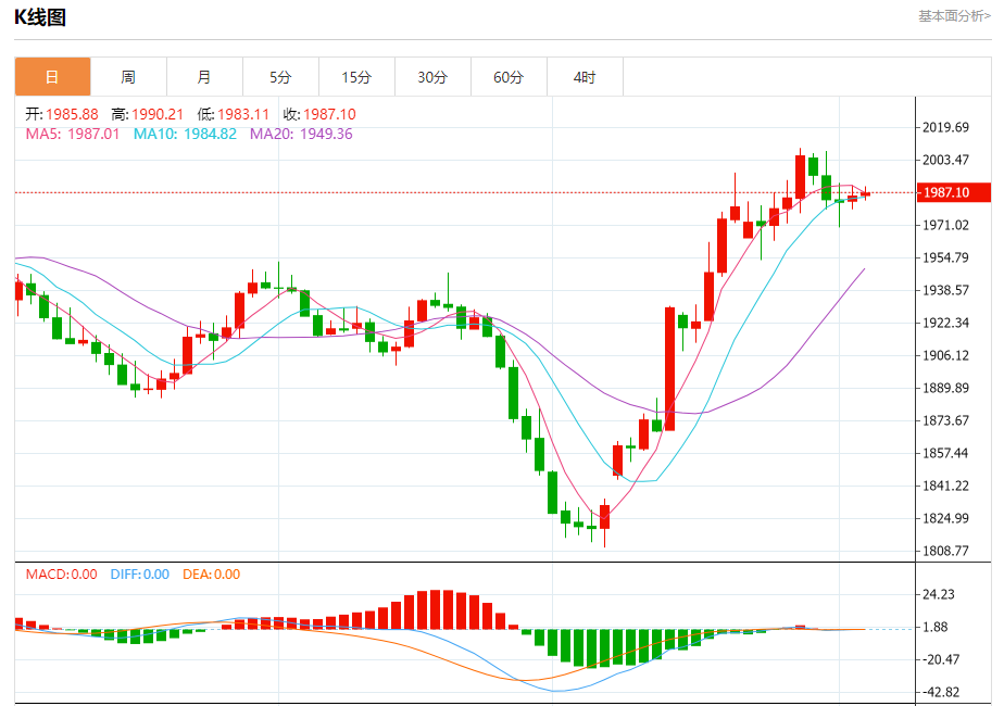 周五盘中,现货黄金报1989.84,涨幅0.21%。