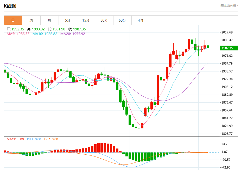 截止发稿,黄金价格现报于1987.27,跌幅0.25%。(亚汇网编辑:冰凡)