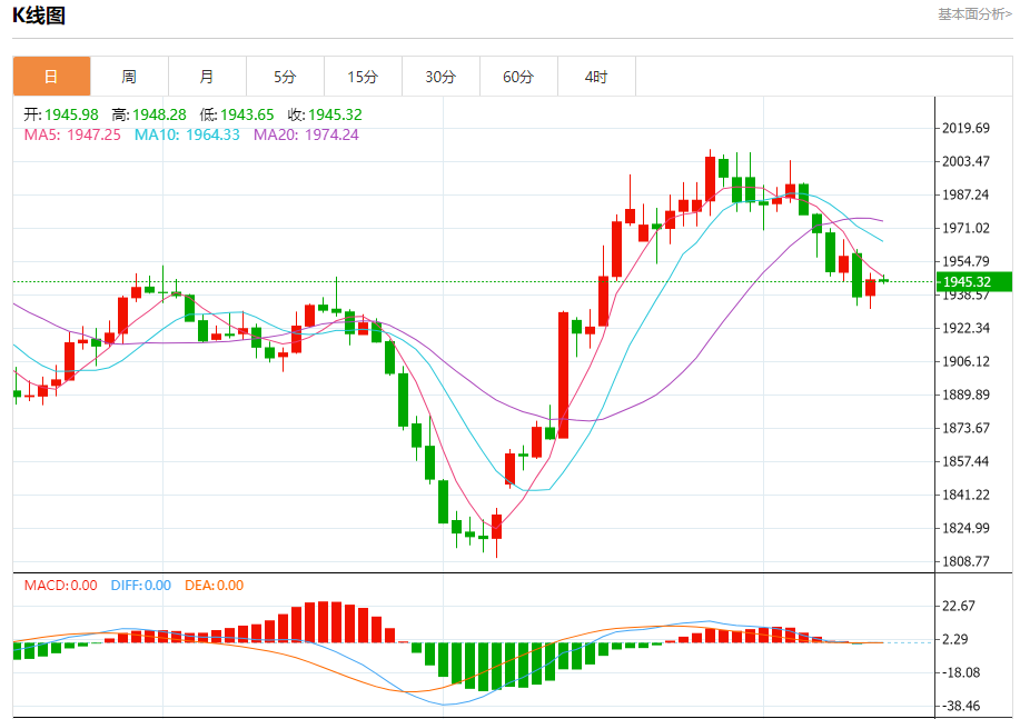 截止发稿,黄金价格现报于1945.27,跌幅0.04%。(亚汇网编辑:冰凡)