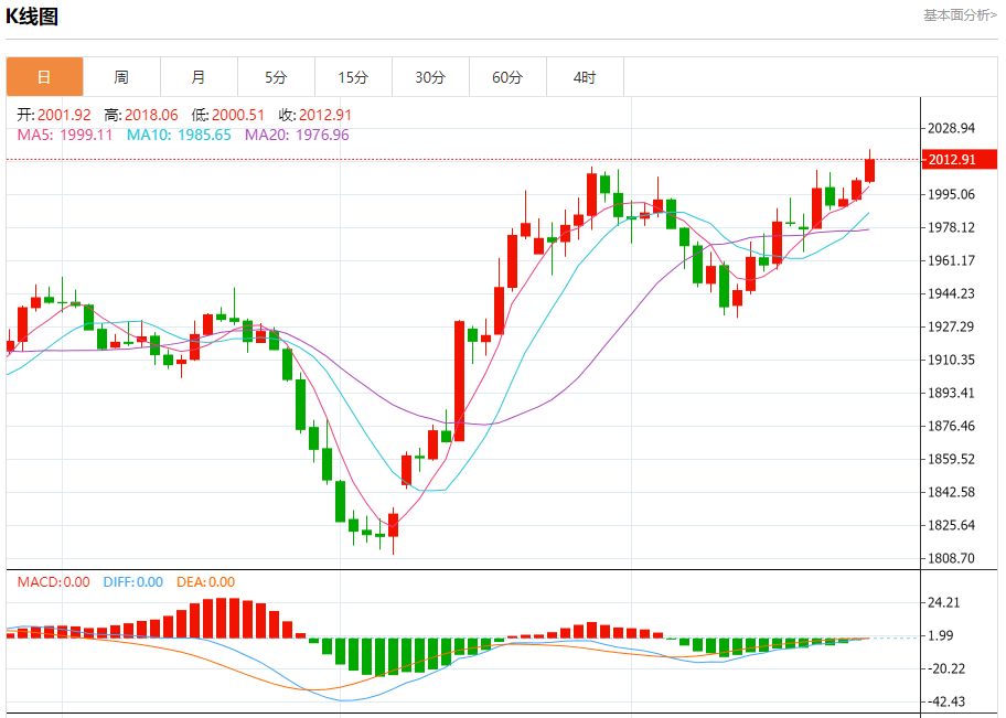技术点评:在2003.00之上,为多头信号,向上的目标位为2018.00。