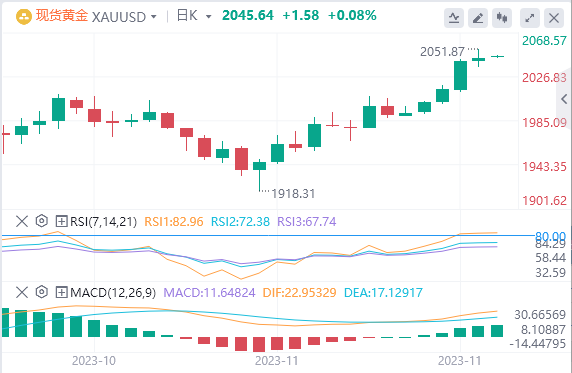 关于数据,美国第三季度(第三季度)的年化国内生产总值为5.2%,而此前为4.9%,好于市场预期的5.0%。市场预计2024年5月将降息25个基点,似乎已经放弃了美国长期加息的说法。
