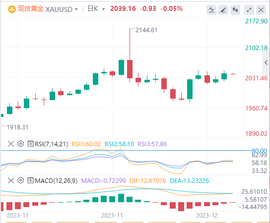 Quantitative Commodity Research分析师Peter Fertig表示表示,FOMC会议后, 市场有点过于兴奋,押注明年将大幅降息,但一些美联储官员尚未做好准备,仍然认为通胀风险尚未完全克服。另一方面,支撑黄金的是美债收益率正在下降,这降低了持有黄金的机会成本。