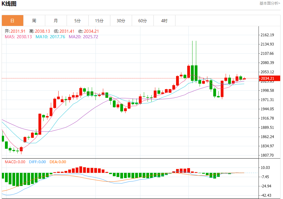 截止发稿,黄金价格现报于2034.21,涨幅0.15%。(亚汇网编辑:冰凡)