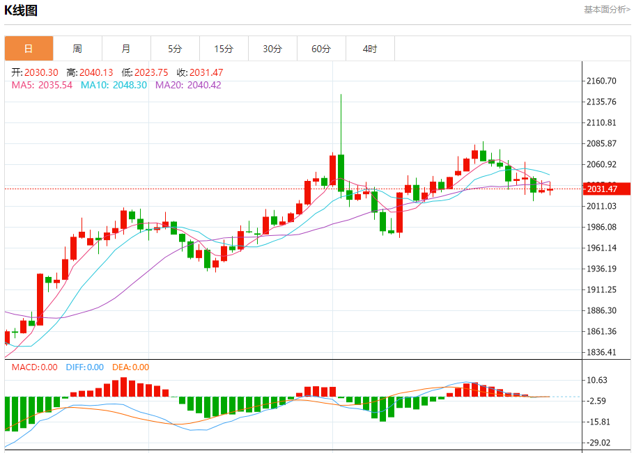 技术点评:在2028.00之上,为多头信号,向上的目标位为2043.00。