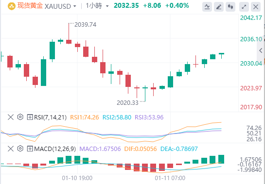 如果美国通胀数据疲软导致反弹持续,那么近期阻力位在21日均线2,045美元处。金价的下一个看涨目标是上周五的高点2,054美元,在此高点之上,测试2,100美元关口的大门将重新打开。