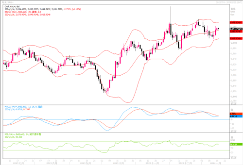 周一(1月15日)金价上涨0.2%,至每盎司2,052.10美元。中东紧张局势升级以及市场加大了对美联储最早将于3月降息的押注,使得黄金的投资吸引力逐步提升。但由于美国周一为马丁?路德?金纪念日假期,市场交投淡静,为此黄金波幅有限。
