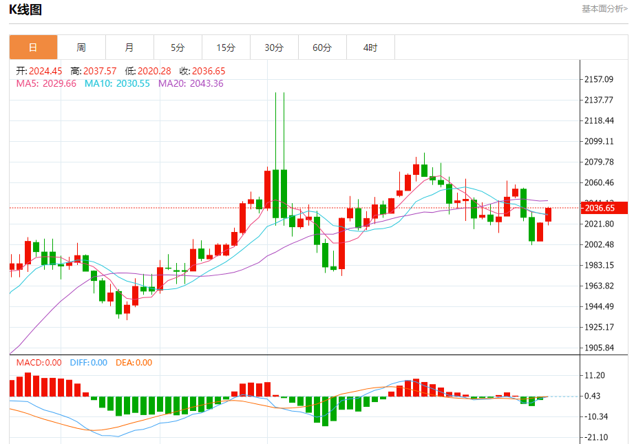 周五盘中,现货黄金报2036.38,涨幅0.67%。