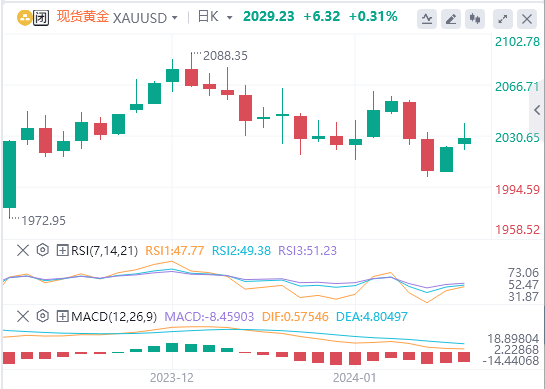 而在经济走强之际,美联储正在寻找疲软迹象,考虑放松货币政策。金价的走势通常与利率的走势相反。交易员削减了对美联储转向的押注,预计3月份降息的可能性约为52%,低于上周末的近80%。