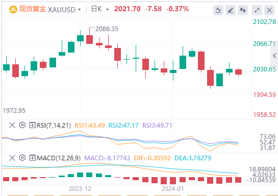 黄金目前的交易价格为2021.70美元,徘徊在略低于2021.50美元的50日移动均线下方,表明短期内情绪为中性至略微看跌。这种接近50天平均线的位置表明未来价格走势的潜在支点。 该资产的交易价格也高于200日移动平均线1963.65美元,这可能会在下跌趋势的情况下提供强劲的支撑位。