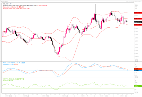 技术层面上,日线级别图上,金价处于布林带通道中轨线下方,各项技术指标有下行倾向,显示黄金偏于弱势。目前2000美元/盎司应该是一个关键水平,一旦决定性地地跌破该位,可能会使金价变得脆弱。随后的下跌可能推动金价进一步跌向1988美元/盎司支撑位,然后再跌向100日简单移动平均线(目前在1972美元/盎司附近),以及200日移动平均线(在1964-1963美元/盎司区域附近)。上行方面,周五高点(在2040-2042美元/盎司附近)可能继续成为金价近期的强劲障碍。如果金价持续走强,可能引发空头回补反弹,并推动金价升向2077美元/盎司区域。上行轨迹可能会进一步延伸,让多头重新尝试冲击2100美元/盎司整数关口。