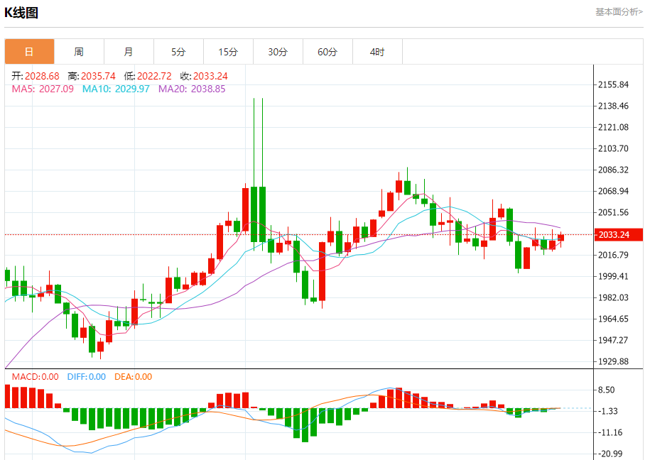 今日分析:在 2023.00 之上,看涨,目标价位为 2039.00 ,然后为 2045.00 。