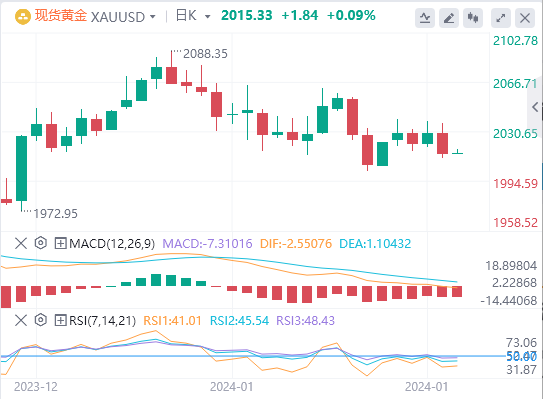 从技术面上来讲,2月期货黄金近期整体仍有优势,但是最近这种上行势头已经开始消退。日线图上连续三个月的上行趋势已经处于危险当中,上方首个阻力位在2025美元,然后是本周高点2039.3美元,多头的下一个目标是推动黄金站上2067.3阻力,并令其收盘价稳在这一位置上方。黄金下方的首个支撑见于1月低点2004.6美元,随后是2000美元,空头近期的下行目标是将黄金推至2000美元下方。