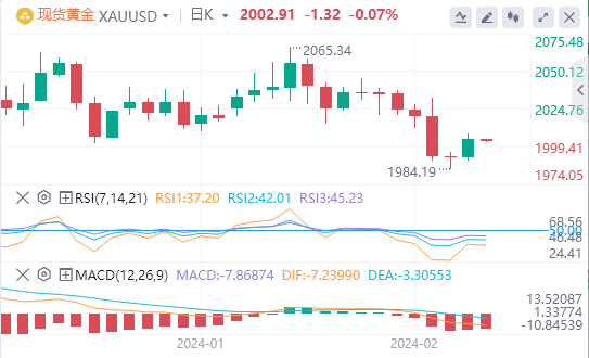金价呈中性偏下行走势,即便金价处在200日移动均线(DMA)上方。从价格走势来看,金价已连续创下更低的高点和低点,为进一步下行打开了大门。不过,空头必须夺回位于1996.01美元的100日均线,这可能会打开测试12月13日低点1973.13美元的大门,随后是位于1965.41美元的200日均线。另外若多头将金价推升50日均线即2031.80美元上方,黄金可能会上涨接近2月1日的高点2065.60美元。