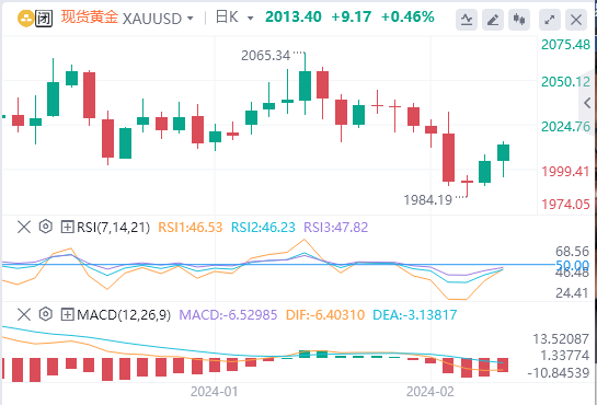 美国劳工统计局周二报告称,1月份消费者价格指数同比上涨3.1%。这一数据高于市场预期的2.9%。此外,剔除波动较大的食品和能源价格的核心CPI上涨3.9%,与12月持平。CPI数据公布后,随着CMEFedWatch工具显示美联储在未来两次政策会议上维持政策利率不变的概率攀升至60%以上,基准10年期美国国债收益率升至4.3%,黄金在2024年首次跌破2000美元。