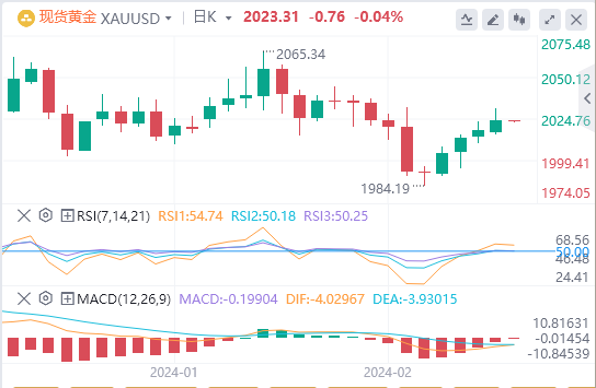 现货黄金连续第四个交易日走高,攀升至逾一周以来的最高水平,一度触及2030关口,最终收涨0.32%,截至目前,黄金报价2023.31。
