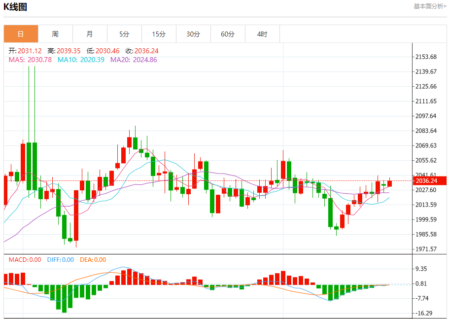周二盘中,现货黄金报2036.51,涨幅0.27%。