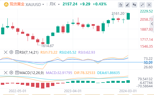 从技术角度来看,近期突破2064-2062美元强势水平关口以及随后突破2100美元大关的强势被视为看涨交易者的关键触发因素。尽管如此,日线图上的相对强弱指数(RSI)已经出现了极度超买的情况。因此,审慎的做法是等待短期盘整或小幅回调,然后再对已确立的短期上升趋势进行定位。不过,金价似乎有望进一步攀升至2,200美元的心理关口。
