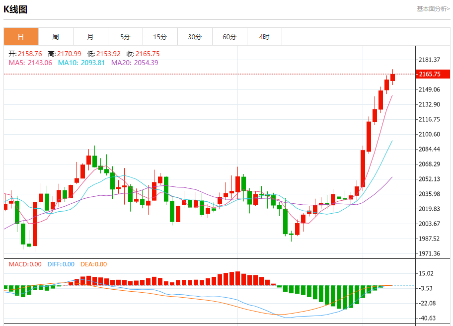 周五盘中,现货黄金报2165.96,涨幅0.29%。