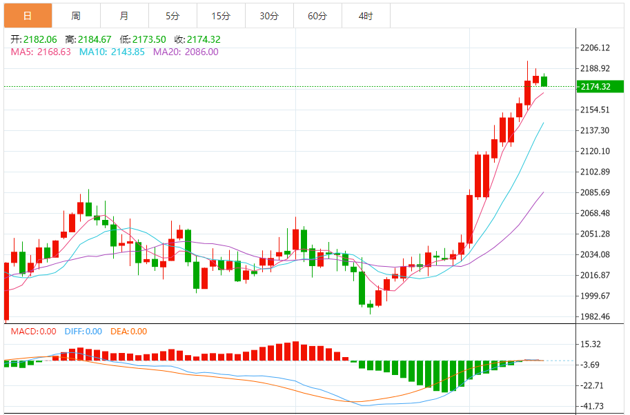 截止发稿,黄金价格现报于2174.21,跌幅0.38%。(亚汇网编辑:冰凡)