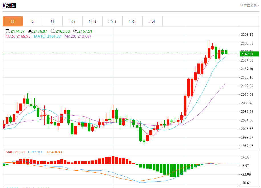 周四盘中,现货黄金报2166.99,跌幅0.33%。