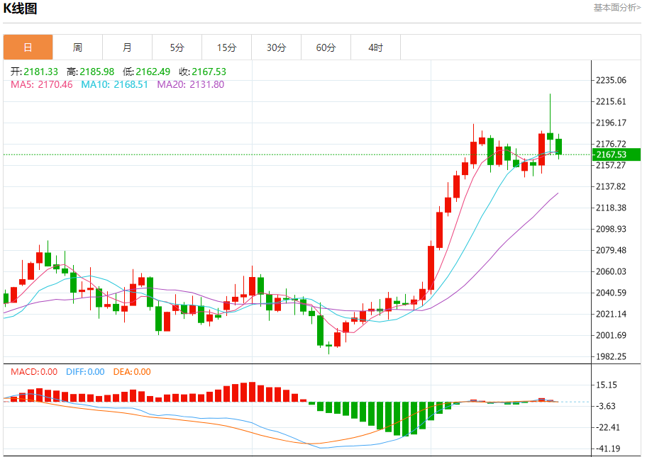 截止发稿,黄金价格现报于2167.35,跌幅0.63%。(亚汇网编辑:冰凡)