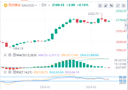 因此,金价结束了从历史新高2,223美元连续两天整理下跌,等待新的催化剂来重拾升势。