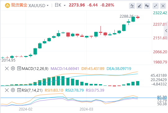 从技术角度来看,金价已经在未知的领域上涨,近期的势头似乎足以让多头突破2300美元大关。也就是说,日线图上的相对强弱指数(RSI)显示出极度超买的状况,值得谨慎对待。因此,谨慎的做法是等待近期出现一些盘整或适度回调,然后再为进一步上涨做准备。