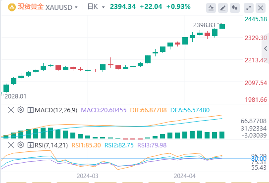 这种不稳定性增强了黄金作为避险资产的吸引力。市场对这些事态发展的反应值得注意,金价飙升至近期高点2400美元。这一上涨凸显了黄金在地缘政治不确定时期作为首选安全资产的作用。