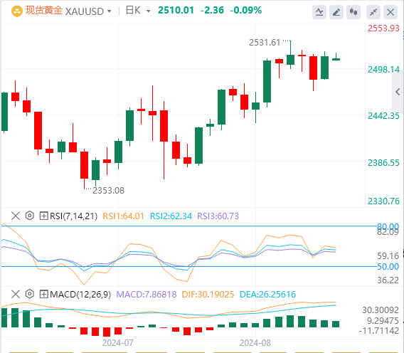 此外,中东地缘政治紧张局势升级和经济不确定性可能会提振避险需求,从而有利于金价。另一方面,中国经济需求低迷可能会削弱黄金价格,因为中国是全球最大的黄金生产国和消费国。周一晚些时候,美国7月耐用品订单到期。本周的亮点将是美国第二季度国内生产总值年化(GDP)初值和7月份个人消费支出-价格指数(PCE),分别将于周四和周五发布。