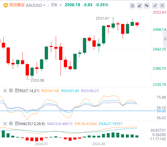 由于安全需求缓解,黄金周二小幅走低。美国空军参谋长联席会议主席布朗上将周二早些时候表示,在局势没有升级后,人们对以色列和黎巴嫩真主党之间近期更广泛的中东冲突的担忧已经缓解。尽管如此,据路透社报道,这位美国最高将军警告说,“伊朗在权衡对以色列的打击时仍然构成重大威胁”。