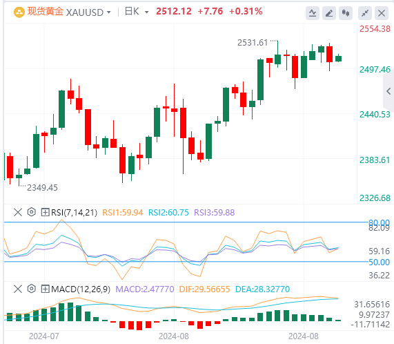 黄金的上涨趋势保持不变,尽管黄金触及2500美元下方的日低点2493美元。相对强弱指数(RSI)显示看涨势头已经消退,但在持续的回调中,买家若隐若现。