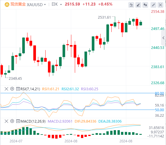 交易员现在正等待周四公布的美国初请失业金人数和国内生产总值(GDP)数据,以更清楚地了解美国利率的预测路径。鉴于美联储(Fed)主席杰罗姆鲍威尔(JeromePowell)在杰克逊霍尔(JacksonHole)演讲中强调了保持高利率对劳动力市场的风险,就业数据可能特别相关。GDP数据是对第二季度首次估计的修正,经济学家预计它将稳定在2.8%。负面的宏数据可能会刺激金价走高,因为这将表明美联储需要比以前想象的更快地降低利率。较低利率的承诺使黄金对投资者更具吸引力,因为它是一种非支付利息的资产。