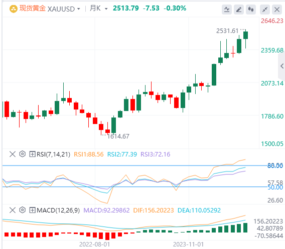 黄金的关键阻力位位于历史高点和2,530美元趋势通道上限的交汇处附近。再往北,下一个障碍出现在2,600美元的心理关口。