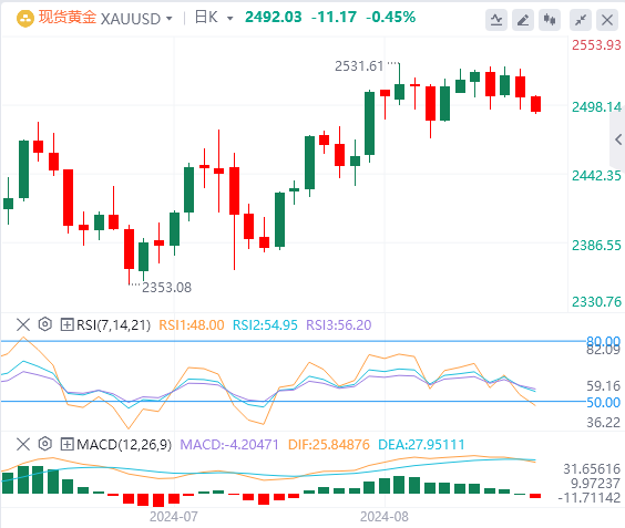 下行方面,黄金的首个下行目标位在2470美元,即8月22日的低点。若持续看跌势头可能会引发长期下跌,跌向2432美元,即8月15日的低点。下一个需要关注的关键水平是2372美元,即100天指数移动均线。