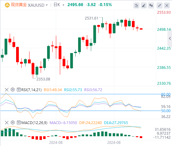 金价日线图显示,已经走出更低的高点和更低的低点,这通常是持续卖压的迹象。不过,日图显示,技术指标维持在积极水平内,看跌倾向适中,限制了看跌潜力。此外,金价处在所有移动均线上方,看涨的20简单移动均线维持上升倾向,处在大级别移动均线上方,并在2,478.75美元左右构成动态支撑。