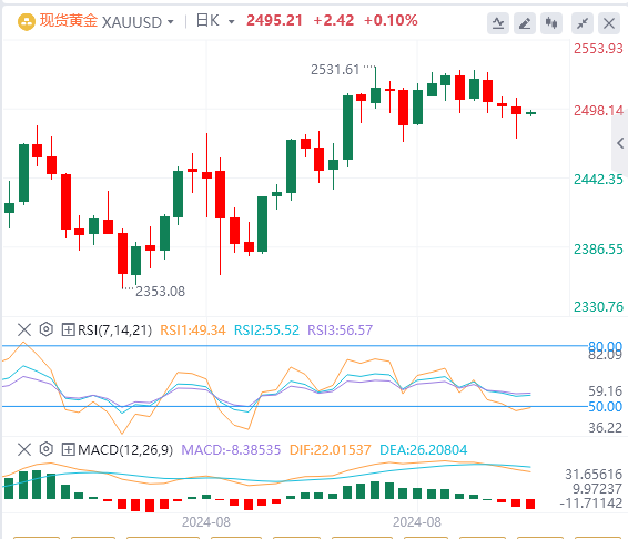 上行方面,日线收盘收复2,500美元关口对于金价重拾升势至关重要。下一个重要上行阻力处在历史高位2,532美元,若突破该水平,将测试2550美元心理关口。如果金价再度整理下跌,可能再次挑战21日均线(2,485美元),跌破后将测试对称三角形阻力反转的支撑位(2,462美元)。