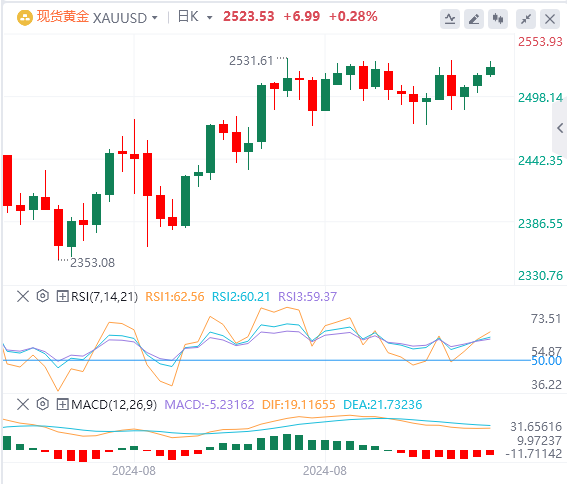 黄金尚未达到的看涨目标为2550美元,这是在8月14日最初突破7月至8月区间后产生的。假设上升趋势仍然存在,它可能最终会达到目标。突破8月20日的历史高点2531美元将进一步证实继续走高至2550美元的目标。