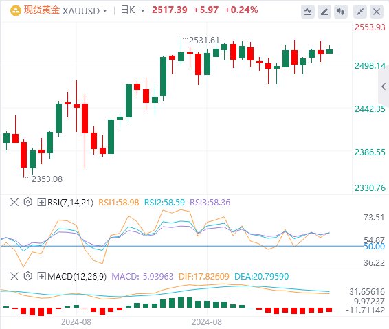 然而,短期趋势现在是横盘整理的,因此黄金也很有可能在2480美元至2531美元历史高点之间的数周范围内继续上下交易。如果黄金收于2460美元以下,它将改变情况并质疑看涨偏见。
